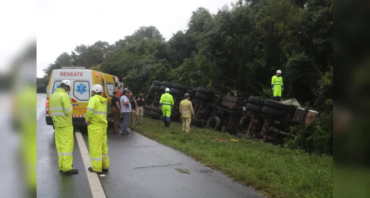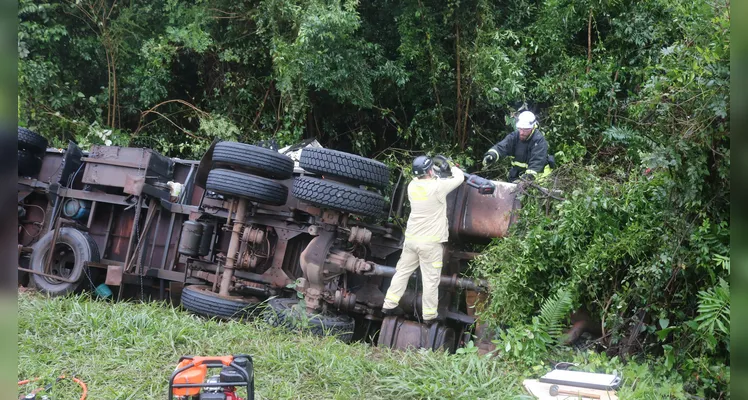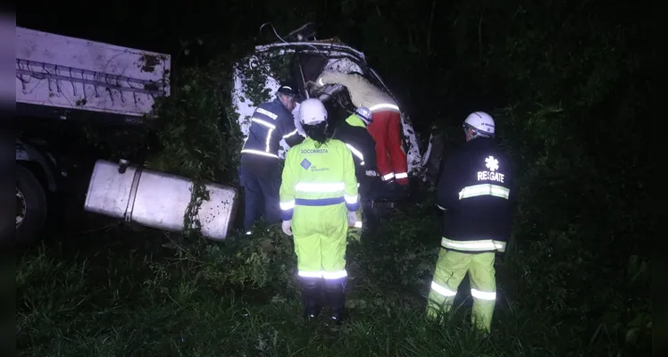 Na tarde desta quinta-feira (5), um trágico acidente envolvendo um caminhão deixou um caminhoneiro morto e seu sobrinho ferido na BR-373, em Ponta Grossa (PR). O veículo, que seguia de Curitiba em direção a Guarapuava, saiu da pista, atravessou a rodovia e tombou nas margens do km 189.