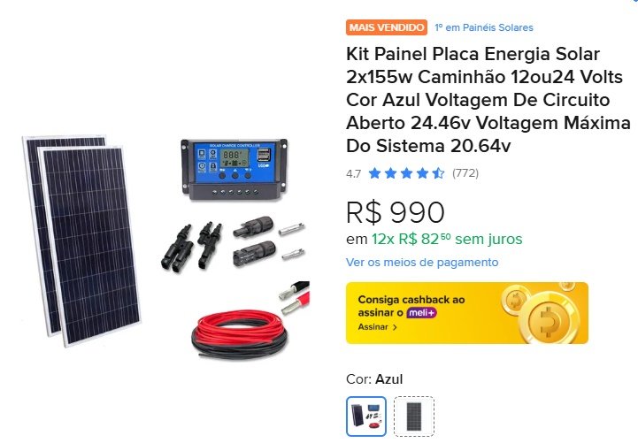 🔗 Acessar o Kit Painel Solar 310W – Mercado Livre