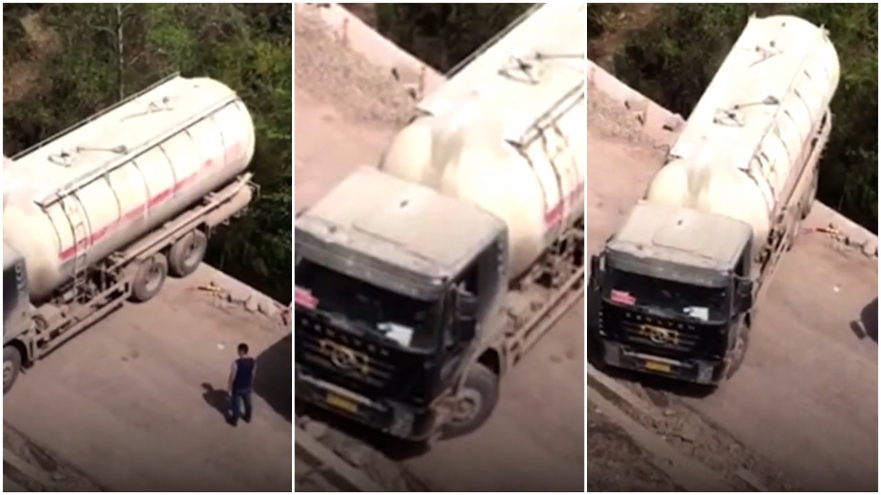 Em uma gravação que circula pelas redes sociais é possível ver um motorista fazendo uma dobra super arriscada à beira de um precipício podendo levar à morte em segundos.
