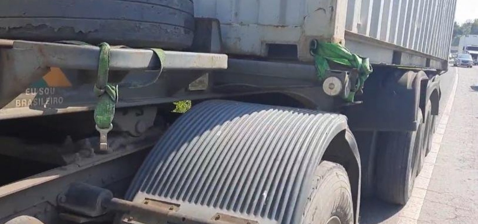 O veículo também se encontrava em péssimo estado dos pneus, com defeito no tacógrafo e a documentação do licenciamento vencida. O caminhão foi removido e autuado pelas infrações.