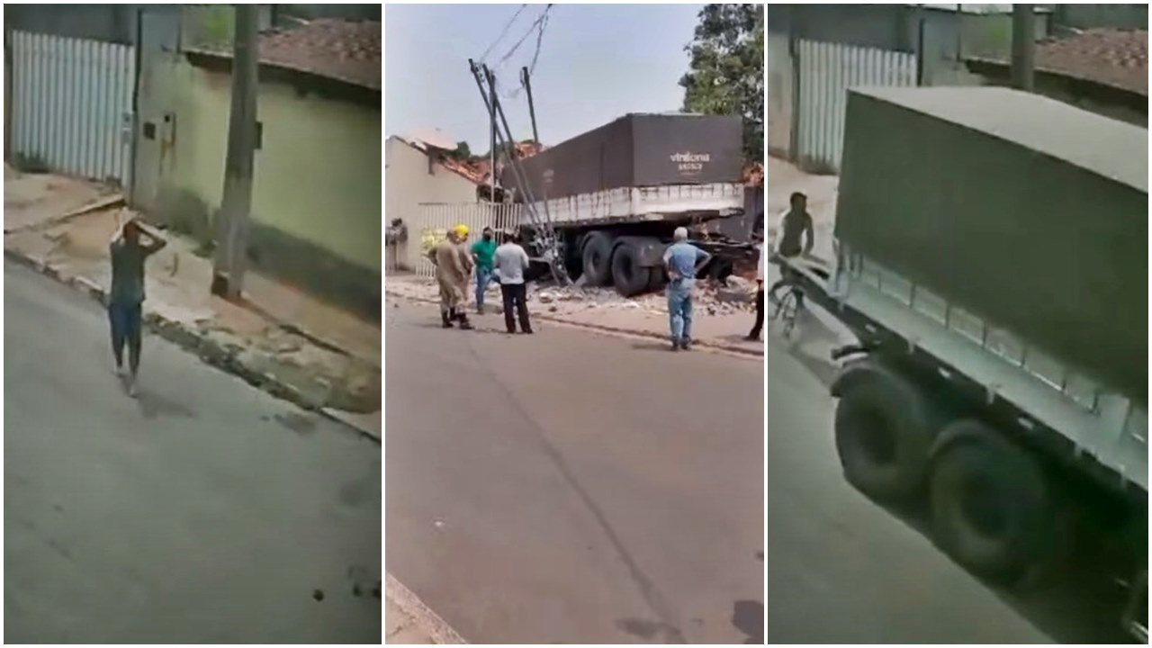 Em vídeos que circulam pelas redes sociais, é possível ver o desespero das pessoas que estavam próximas na hora da colisão que ainda tentaram parar a parte desprendida da carreta.