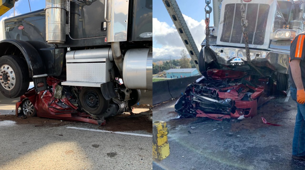 Uma mulher de 46 anos que dirigia um Nissan Altima, foi surpreendida por um caminhão com 18 rodas quando teve seu veículo completamente esmagado pela carreta.