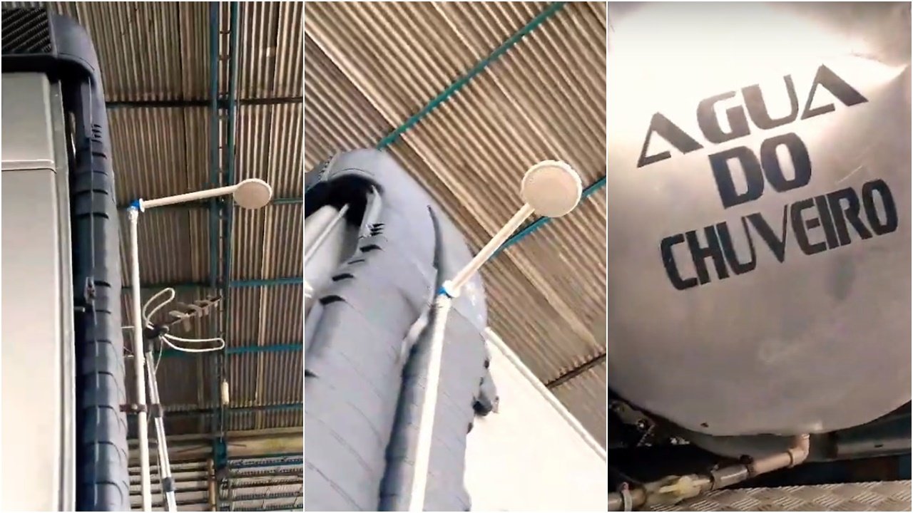Desta forma em que ele conseguiu instalar esse sistema, o caminhoneiro pode tomar banho em qualquer lugar e o mais importante, de graça, sem ter que pagar nada por isso.