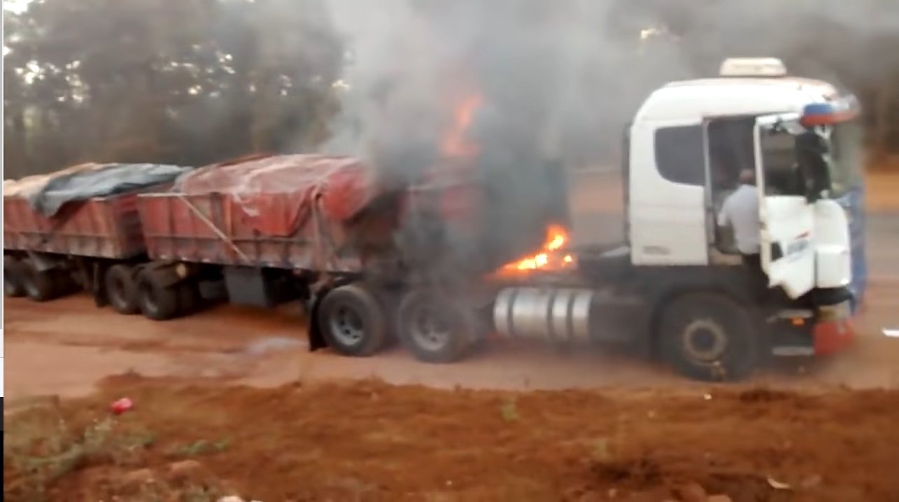 Populares que estavam no local, inclusive a pessoa que filmava o caminhão pegando fogo, gritavam para que o motorista saísse de perto do veículo já que as chamas estavam se alastrando rapidamente.