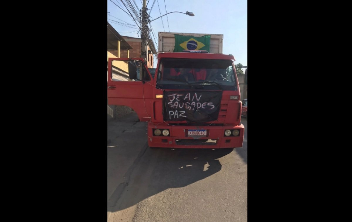 Os caminhões estavam estampados com faixas pedindo pela paz e desejando um bom descanso para Jean Lucas.