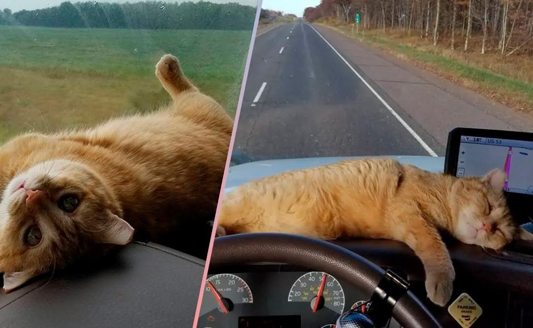 Caminhoneiro viajando com seu gatinho. Foto: reprodução da internet