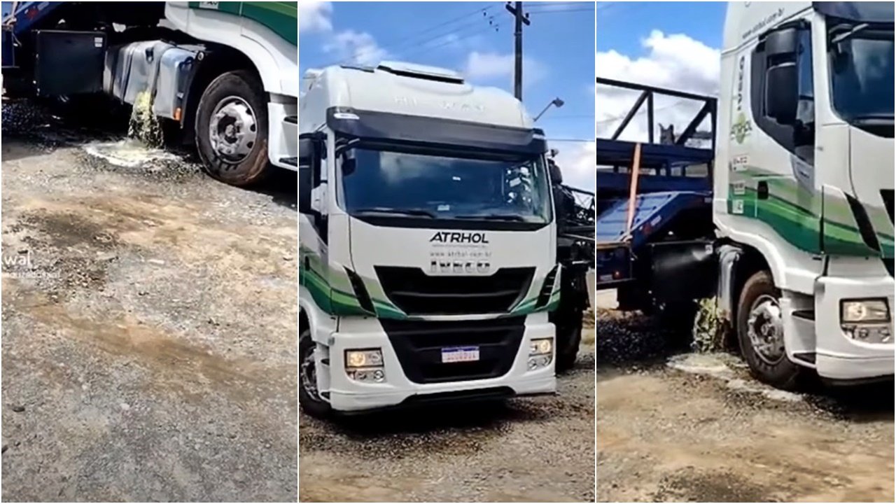 Quando o caminhoneiro precisou fazer uma manobra em que o cavalo juntamente com a prancha ficasse no formato de “L“, a caixa de cozinha acabou estourando o tanque de combustível gerando enorme prejuízo financeiro pelo diesel e o reservatório.
