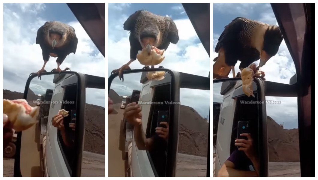 O caminhoneiro decidiu gravar esse feito de cumplicidade, empatia e amor entre o ser humano é uma criatura do mundo animal. O motorista não hesitou em dividir o seu pedaço de pão com a ave e mostrou o ato de cumplicidade mesmo durante o exercício da sua função.