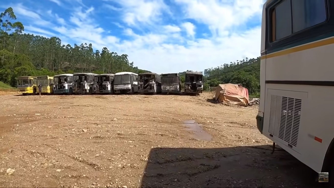 O canal do YouTube Diego Bruno foi atrás de um cemitério de ônibus que também tem alguns caminhões onde se pode retirar peças dos veículos quando necessário, comprando os componentes para usar em outros automóveis.