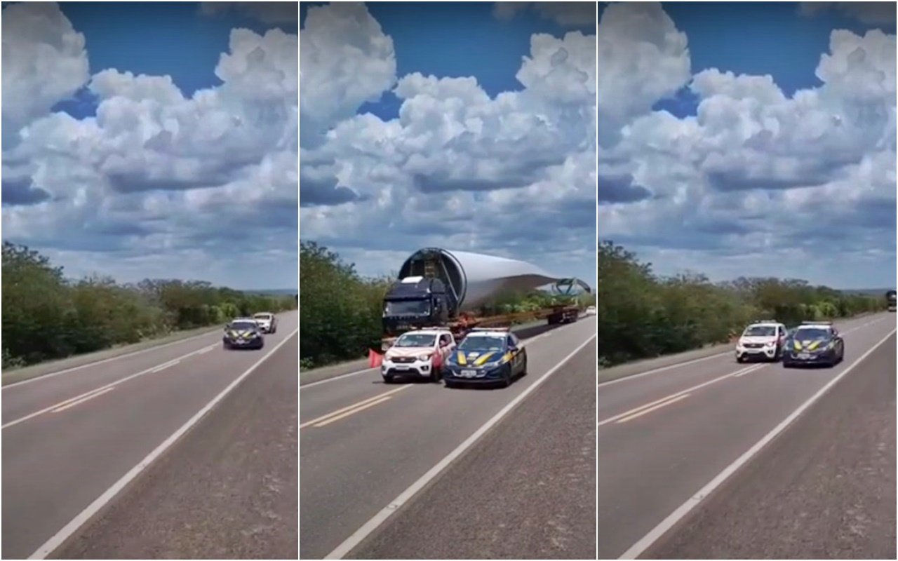 No entanto, essa rápida parada, quase provocou um acidente, uma vez que o caminhão que transportava a pá eólica precisou direcionar o veículo para uma parte do acostamento, a fim de desviar do veículo batedor que parou ao lado da PRF.