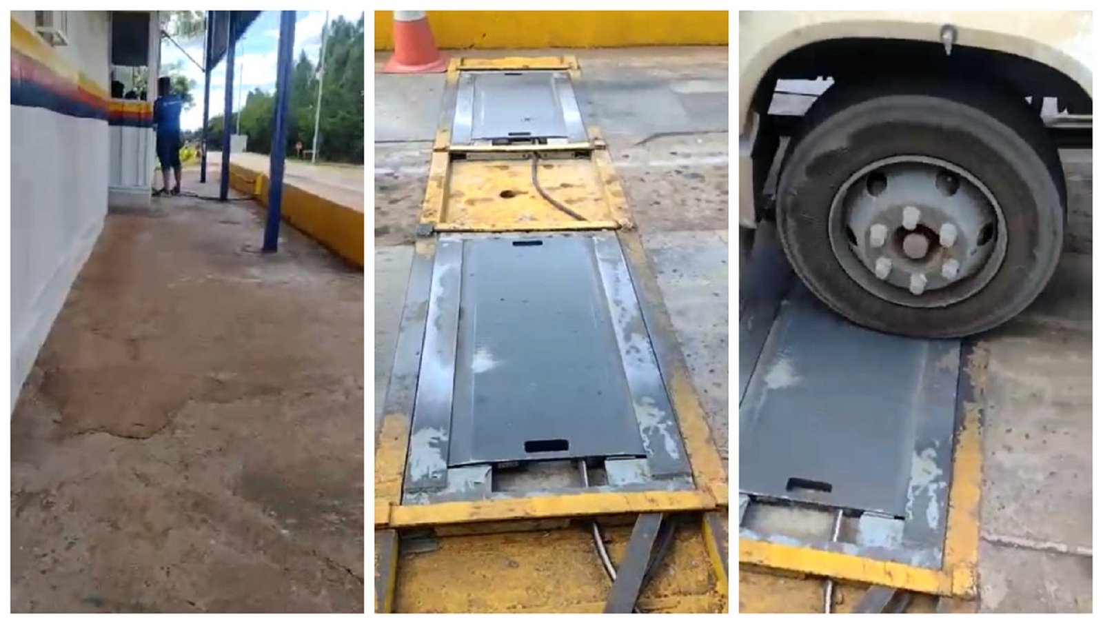 Uma estrutura foi colocada na balança para que ela pesasse mais do que realmente o caminhão carregava, e um motorista fez questão de filmar e divulgar essa irregularidade.