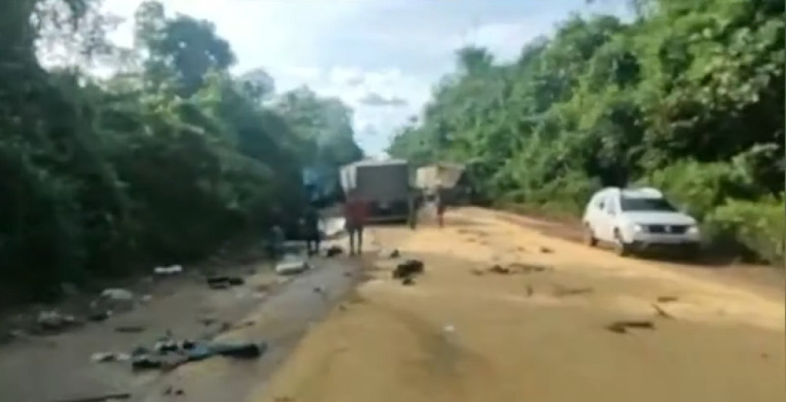 Um acidente impressionante aconteceu na BR-163, entre as cidades de Moraes Almeida e Trairão, no Pará. Um dos caminhoneiros envolvidos no acidente é conhecido como xaropinho. O colega conta que estava conversando com ele pelo rádio PX, quando o profissional relatou estar sem freio, na sequência ocorreu o acidente.
