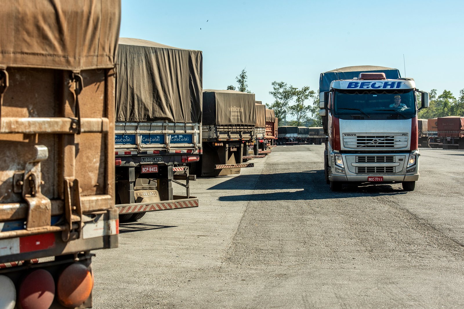 Caminhões parados em estacionamento. Foto: Claudio Neves/ Portos do Paraná