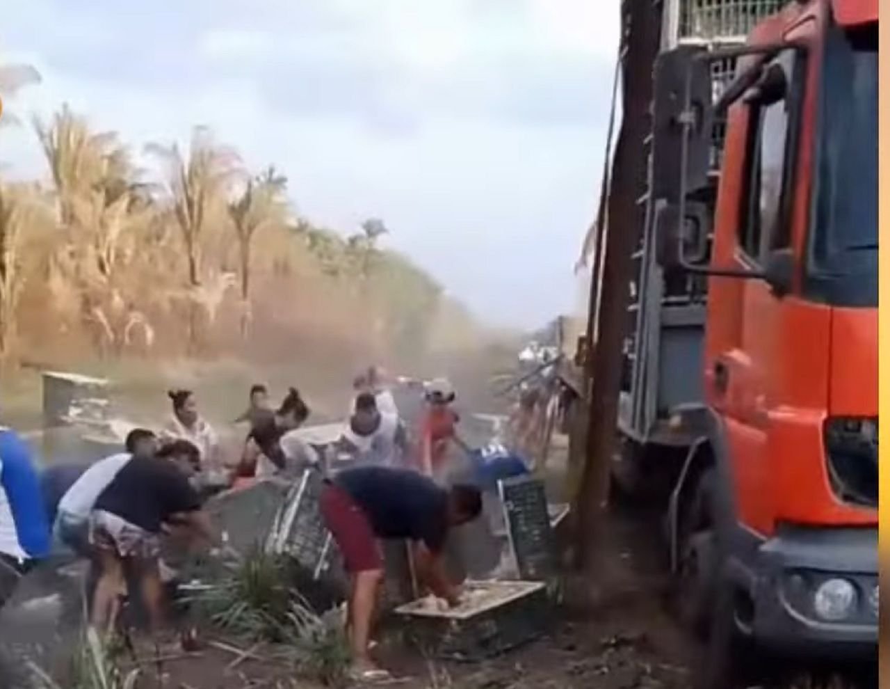 O condutor realizava procedimentos para tentar escorar a carga e, quando menos esperava, várias pessoas chegaram ao local, porém sem a intenção de ajudar o caminhoneiro. Populares se aglomeraram em grande quantidade ao redor do caminhão e começaram a atacar com o intuito de roubar as galinhas que o motorista levava.