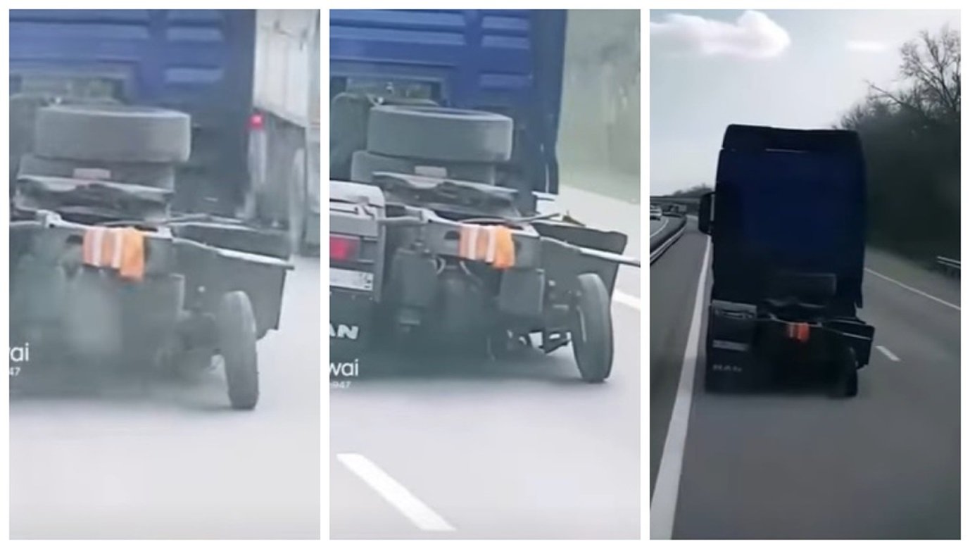 Embora não se saiba por quantos quilômetros o caminhoneiro percorreu nessas condições, as imagens mostram uma cena incomum, com o caminhão inclinando-se perigosamente para o lado direito, como se estivesse prestes a tombar.