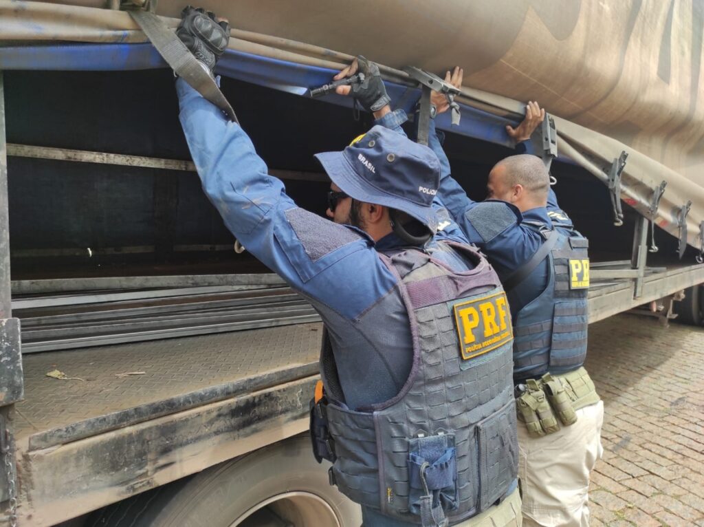 Os agentes da PRF estavam atendendo a um acidente no km 703 quando se depararam com um caminhão estacionado próximo à carreta sinistrada, carregada de perfis metálicos. A rápida percepção dos policiais revelou que parte da mercadoria do caminhão acidentado estava no veículo estacionado.