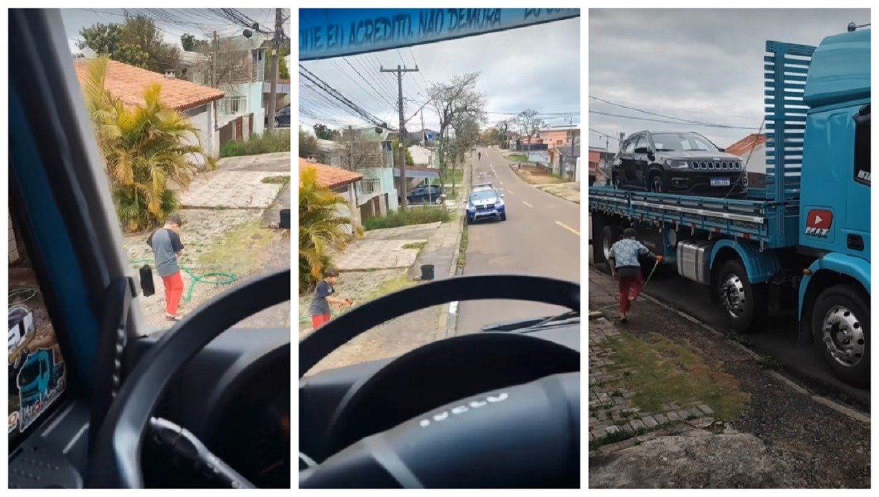 Ele estava lavando seu caminhão com seu filho quando uma viatura da Polícia Militar se aproximou, e os policiais informaram ao profissional que receberam uma denúncia de que o veículo estava estacionado na contramão.