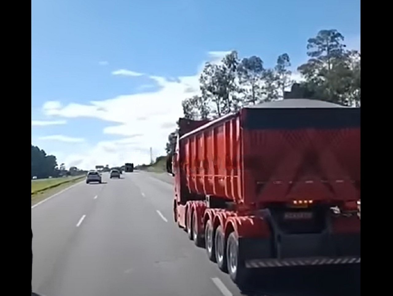O caminhoneiro reduziu a velocidade do veículo e foi flagrado pelo outro motorista fazendo algo totalmente diferente do que ele poderia imaginar.