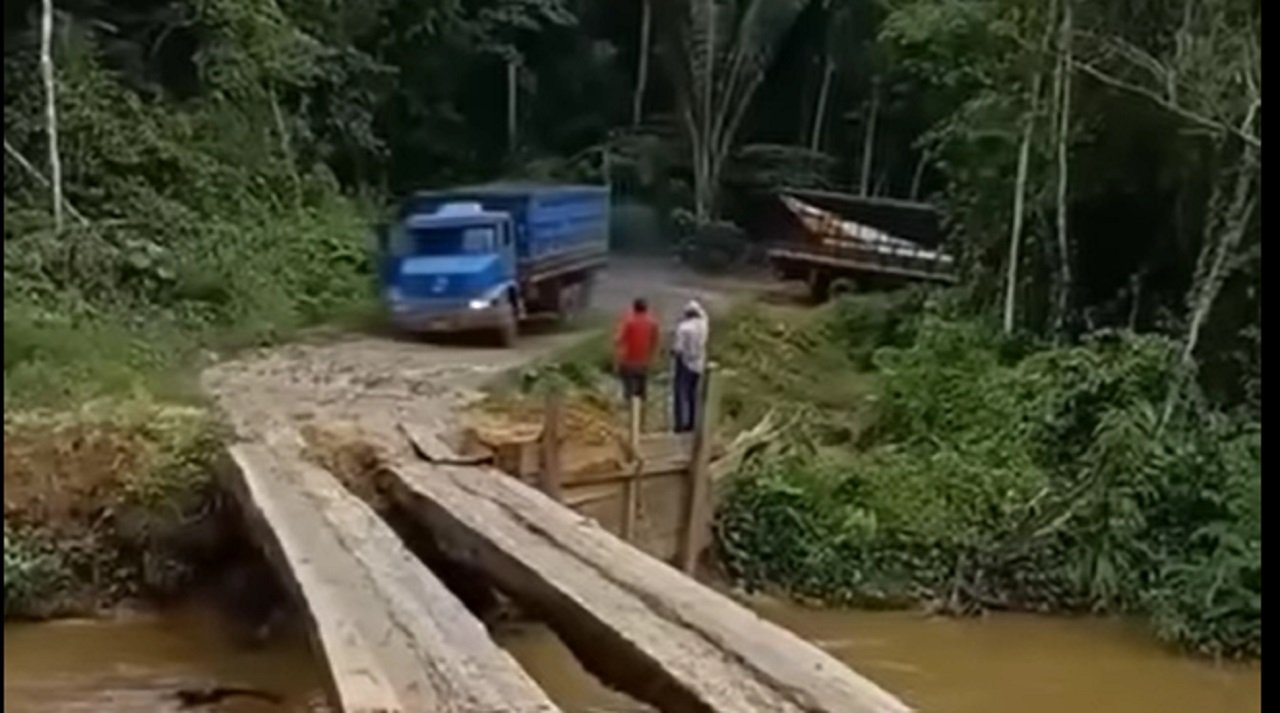“O motorista aí provou que tem coragem mesmo ao atravessar por essa ponte com duas madeiras atravessadas”, disse Marcos enquanto narrava o vídeo. Ele expressou sua perplexidade com a situação, questionando como tanta riqueza pode ser transportada por uma estrada tão precária que sequer tem uma ponte adequada.