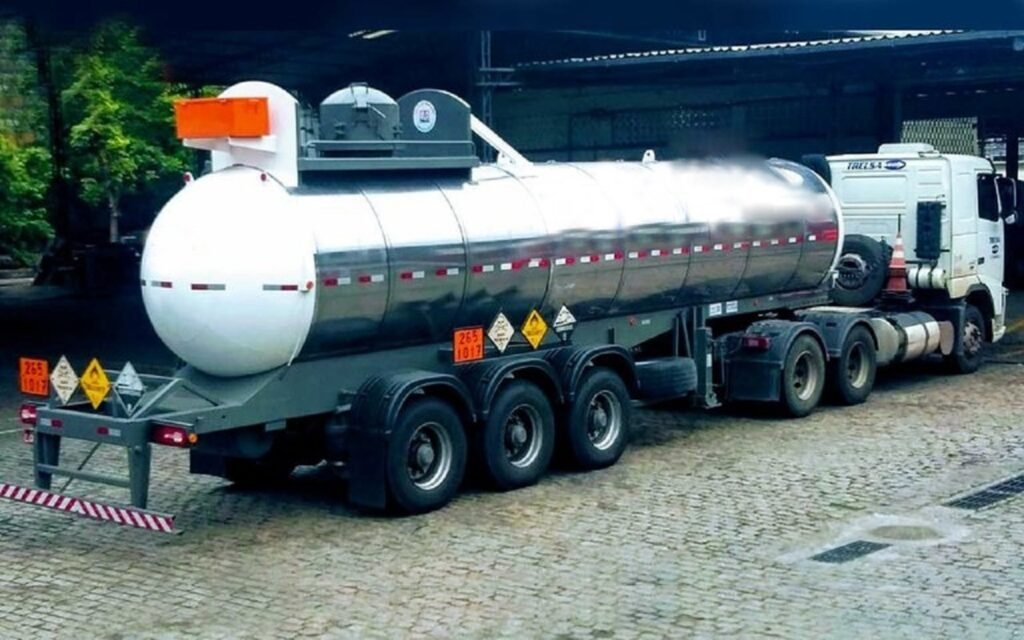 O cloro é transportado em um tanque de caminhão para evitar qualquer tipo de queima em relação ao líquido.