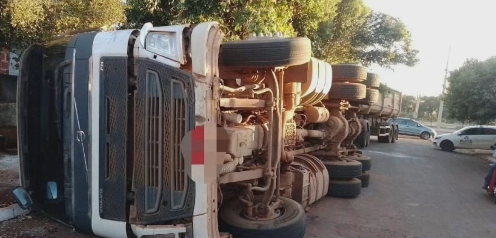 Um caminhoneiro passou por apuros após seu veículo tombar devido à ação de bandidos no município de Bom Jesus de Goiás (GO).
