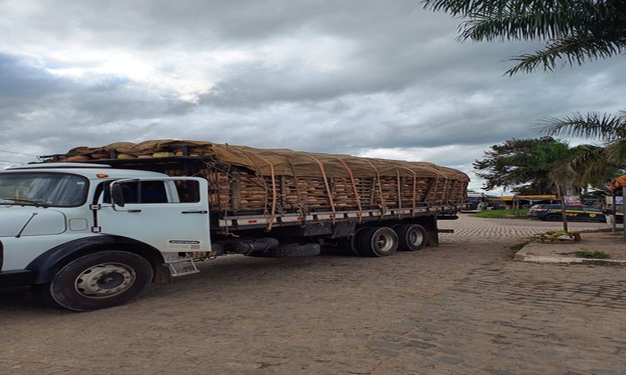 A Polícia Rodoviária Federal (PRF) flagrou um caminhão com 9 toneladas de excesso de peso trafegando pela Br-101, trecho no município de Teixeira de Freitas, Bahia, na última segunda-feira (12).