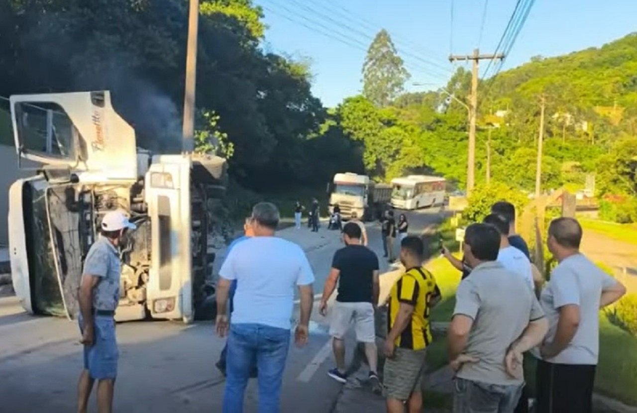 A BR-282 foi palco de um acidente que acabou fechando a rodovia, após um caminhão carregado de cimento tombar no local gerando grande transtorno na região.