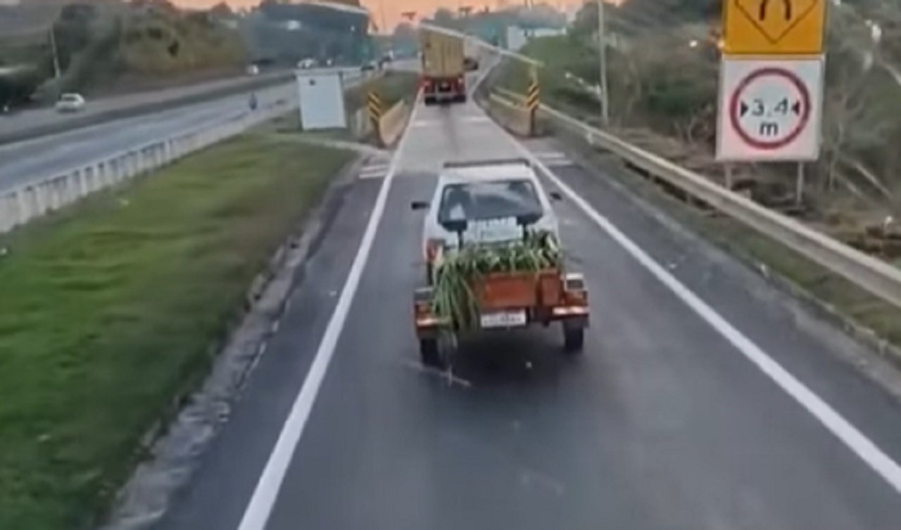Um Fiat Uno foi flagrado acessando uma balança rodoviária, local geralmente destinado a veículos pesados, como caminhões. O fato chamou a atenção de outros motoristas, já que não é comum ver automóveis utilizando este equipamento. O carro estava puxando uma carretinha carregada com vegetação, o que aparentemente justificou o uso da balança.