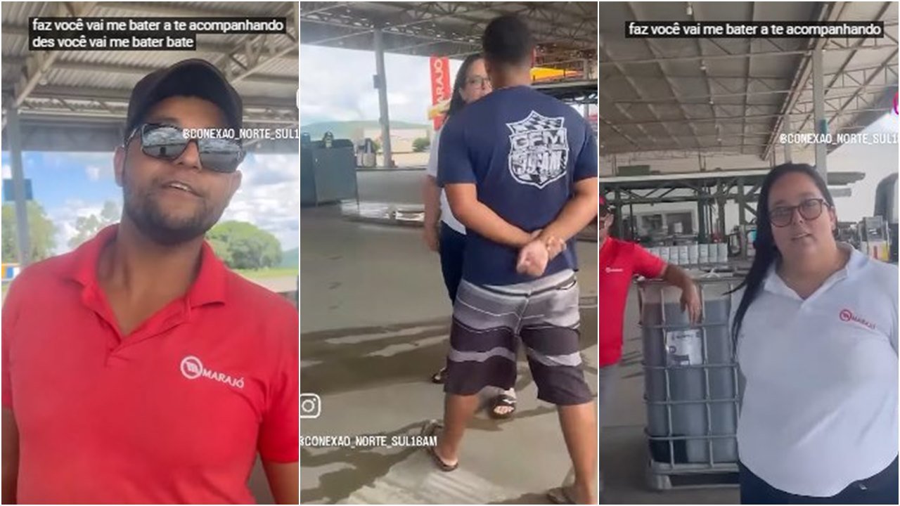 A situação ficou ainda mais tensa quando um dos frentistas, segurando uma barra de ferro, partiu para cima do caminhoneiro. Apesar do gesto, não houve agressão física, e outros funcionários intervieram para evitar que o confronto escalasse.