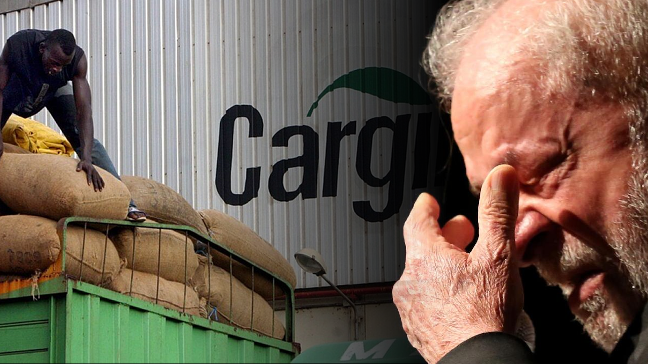 Funcionário trabalhando na Cargill e lula chorando ao lado.