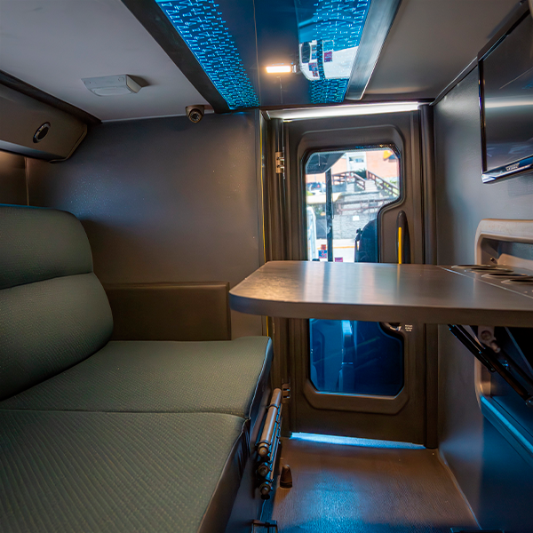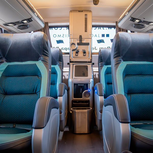 Equipado com bebedouro, cafeteira e cromoterapia, é ideal para proporcionar uma experiência única em rotas como a de Bom Jesus da Lapa aos melhores destinos.
