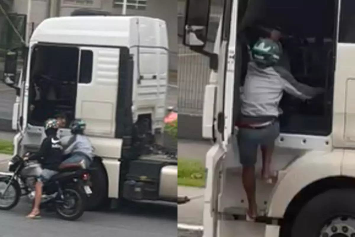 Caminhoneiro sendo assaltado por motoboy, Foto: reprodução