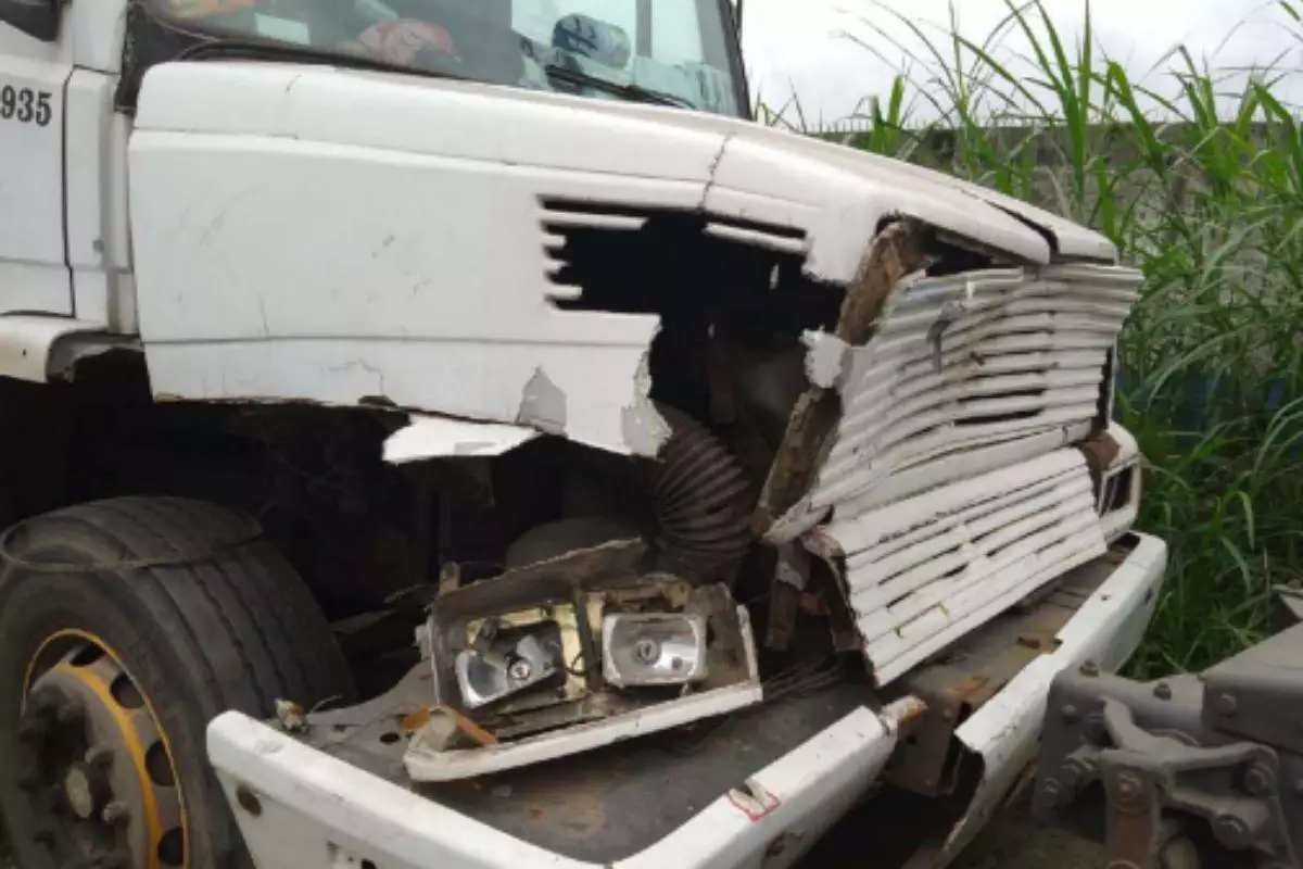 Caminhão com a frente destruida após o acidente. Foto: reprodução