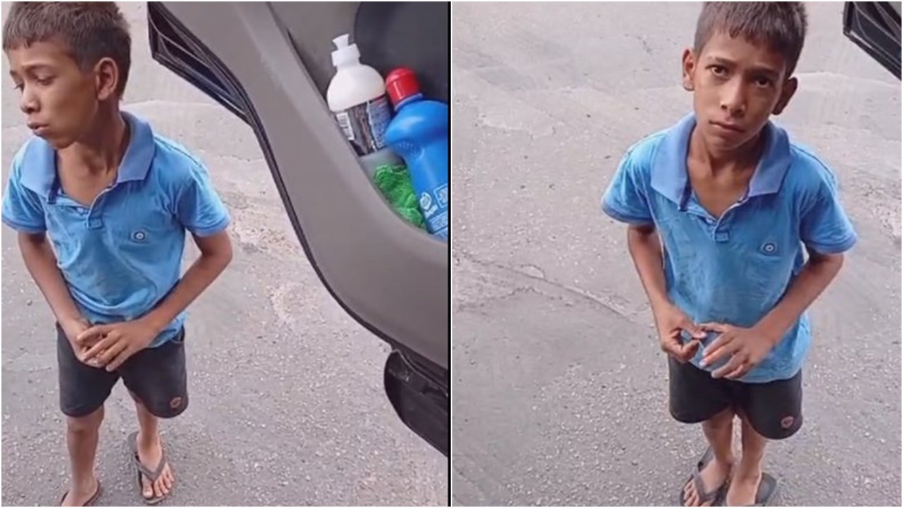 Garotinho oferecendo limpeza para caminhoneiro. Foto: reprodução