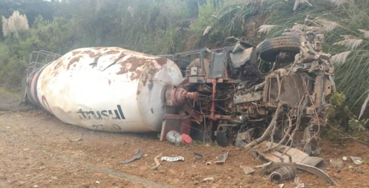 Caminhão betoneira completamente destruido. Foto: reprodução