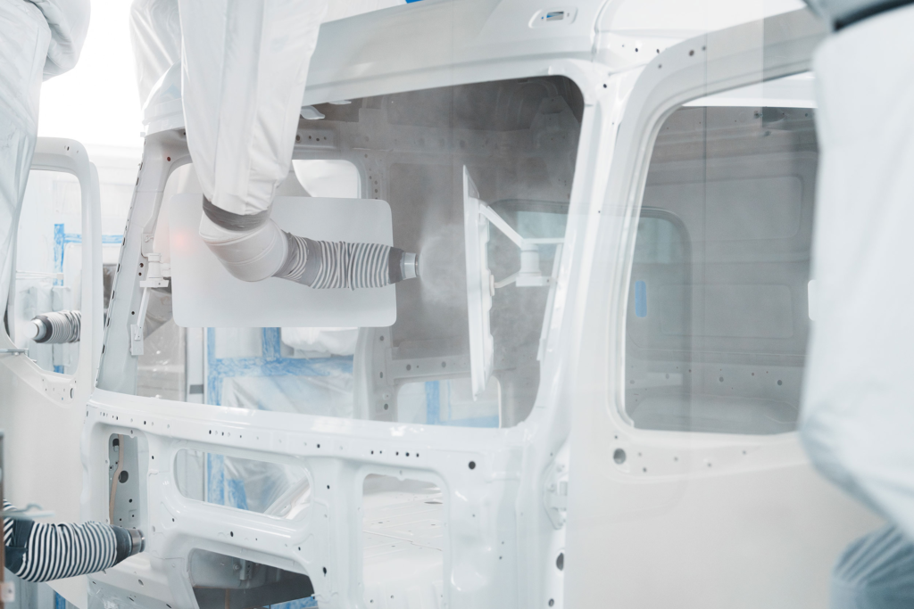 O novo processo de pintura desenvolvido pela Mercedes-Benz Trucks utiliza tintas “ultra-high-solid”, permitindo a aplicação wet-on-wet, ou seja, sem necessidade de secagem entre as camadas. Isso reduz o uso de equipamentos, materiais e consumo energético.