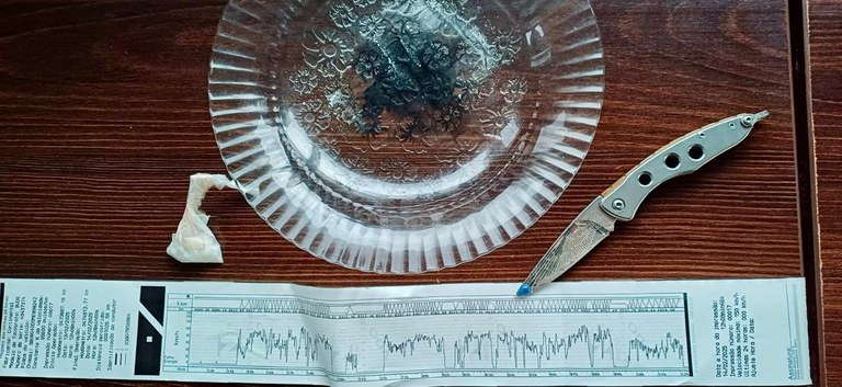 Durante a abordagem, os agentes encontraram resquícios de um pó branco na cabine do veículo, que o condutor admitiu ser cocaína. Além disso, uma pequena quantidade da droga foi encontrada dentro da carteira do motorista, que confirmou ser usuário.
