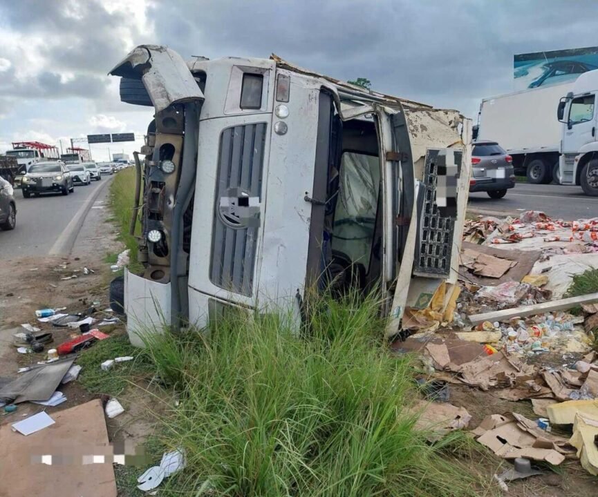 A PRF também informou que, antes da chegada da viatura ao local, parte da carga de laticínios transportada pelo caminhão foi saqueada por populares. O caso segue sob investigação para esclarecer as causas do acidente.