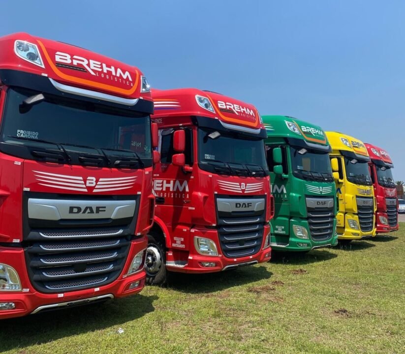Frota de caminhões da Brehm Transportes. Foto: reprodução