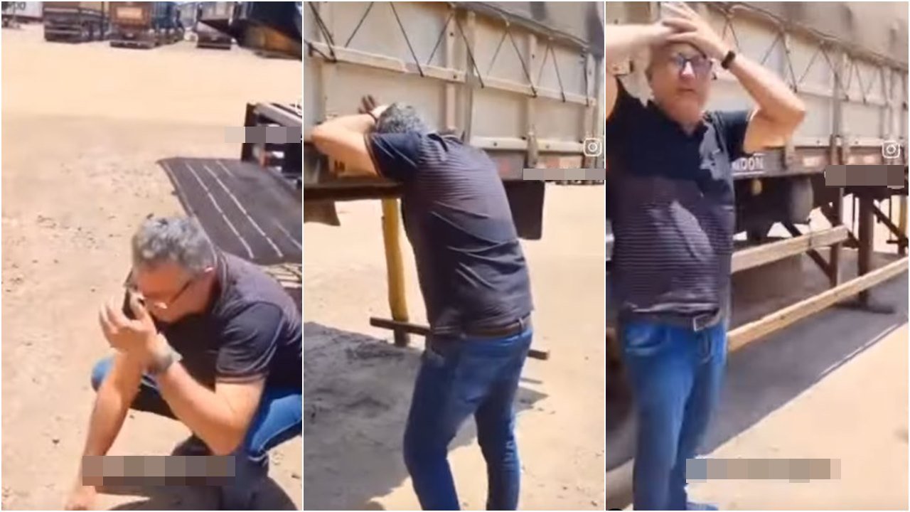 Caminhoneiro se desespera ao ver que seu veículo foi roubado. Foto: Reprodução