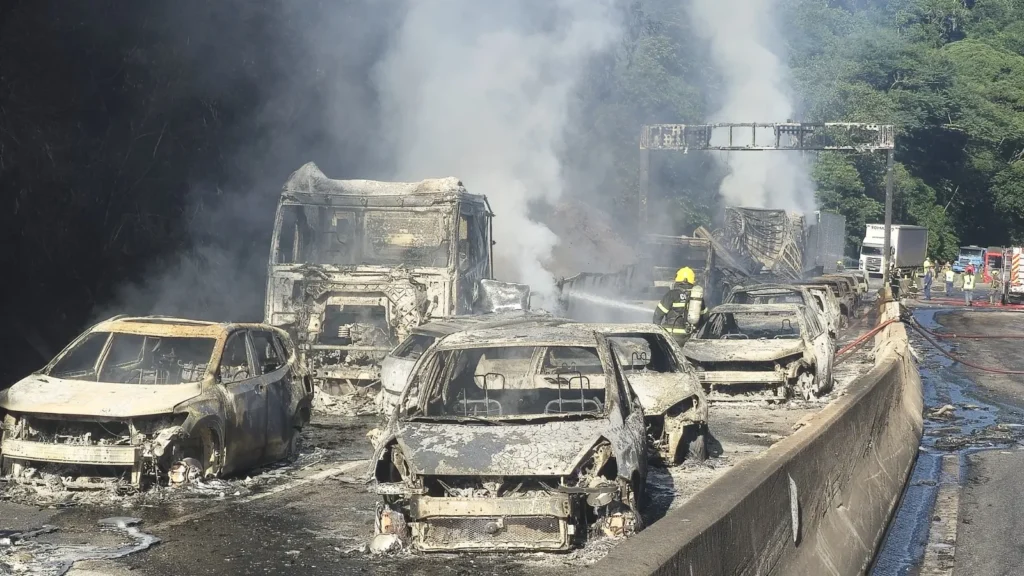 Um grave acidente envolvendo um caminhão de combustível provocou uma explosão de grandes proporções na tarde deste domingo (6), no km 233 da BR-101, em Palhoça, na Grande Florianópolis. A ocorrência mobilizou diversas equipes de emergência e resultou em pelo menos cinco pessoas feridas e 25 veículos incendiados, incluindo 22 automóveis e três carretas.
