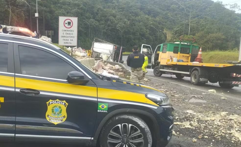 De acordo com informações da Polícia Rodoviária Federal (PRF), o acidente ocorreu no km 667 da rodovia, sentido Santa Catarina. O motorista perdeu o controle do caminhão, que acabou tombando no lado esquerdo da pista.