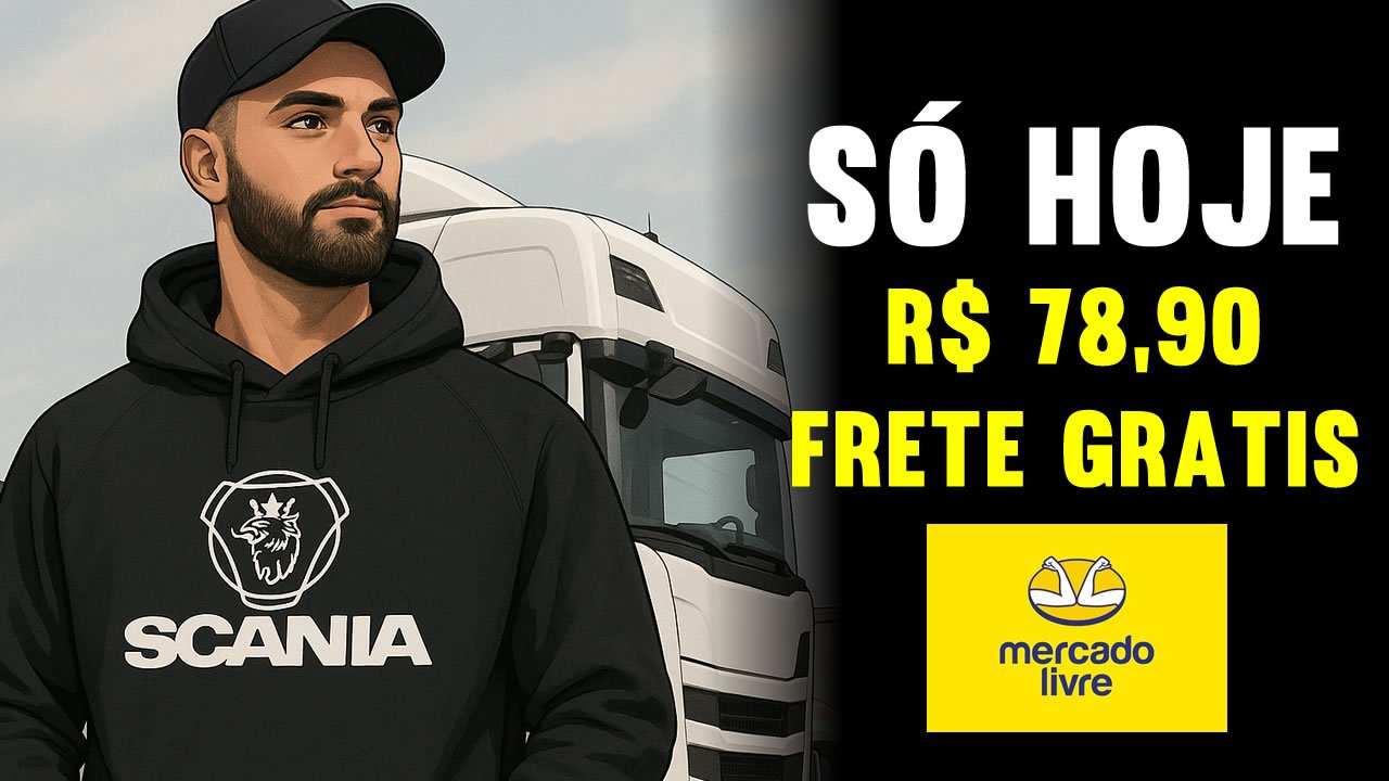 No embalo das promoções relâmpago do 6.6, o Mercado Livre está oferecendo uma oportunidade imperdível para os apaixonados por estrada: o Moletom Caminho Scania Super, voltado especialmente para caminhoneiros e fãs da marca, está saindo por apenas R$ 79,90 — com frete grátis para todo o Brasil.
