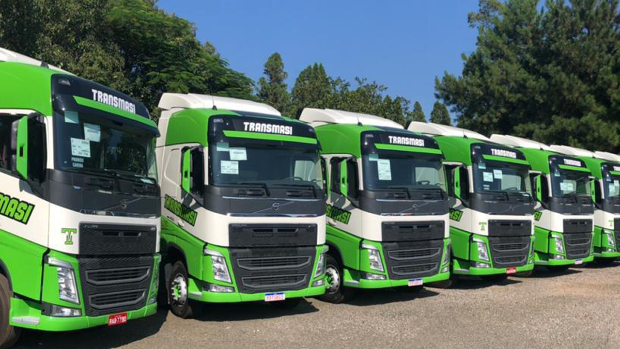 Frota de caminhões da empresa Transmasi. Foto: reprodução