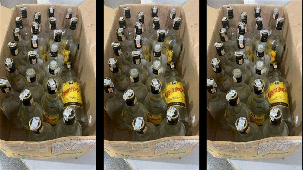 A Polícia Civil apreendeu 900 kg de garrafas vazias da marca White Horse, destinadas à falsificação de uísque, durante abordagem a um caminhão na BR-262, em Campo Grande, na noite de sábado (4). No veículo, foram encontradas 84 caixas com 2.016 recipientes sem nota fiscal.