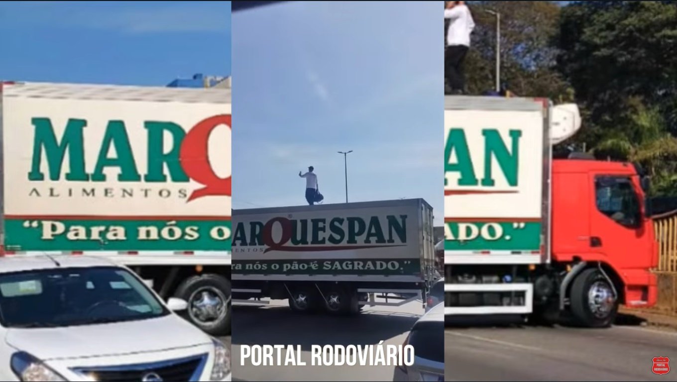 Homem sobe no baú do veículo, ameaça incendiar carga e causa congestionamento de até 8 km