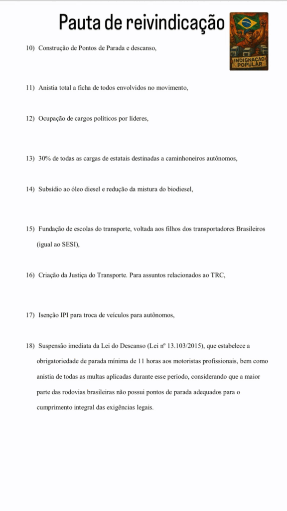 Agora diz que a classe tá na mão. “Tá tudo vago, só promessa vazia. Chega”, soltou. Na visão dele, vários motoristas têm contas para pagar, não se sentem seguros nas estradas nem veem mudança de verdade por perto.