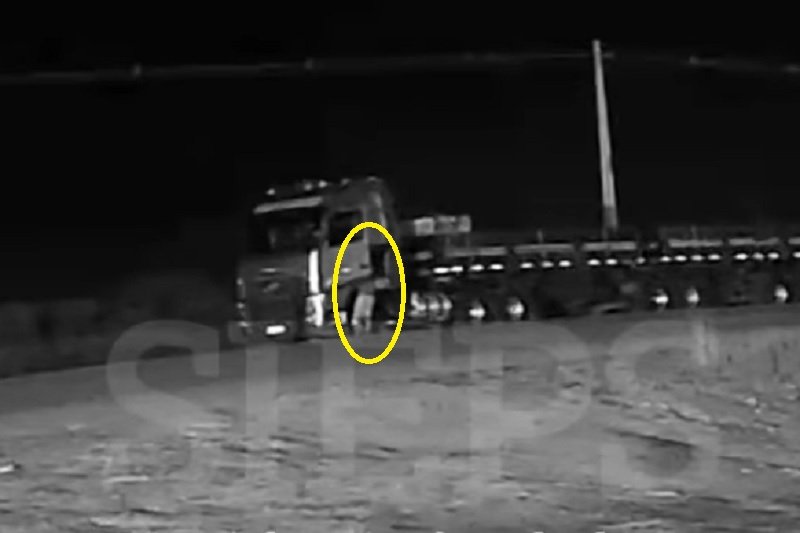 Imagens de monitoramento mostra o momento que o caminhoneiro foi assaltado