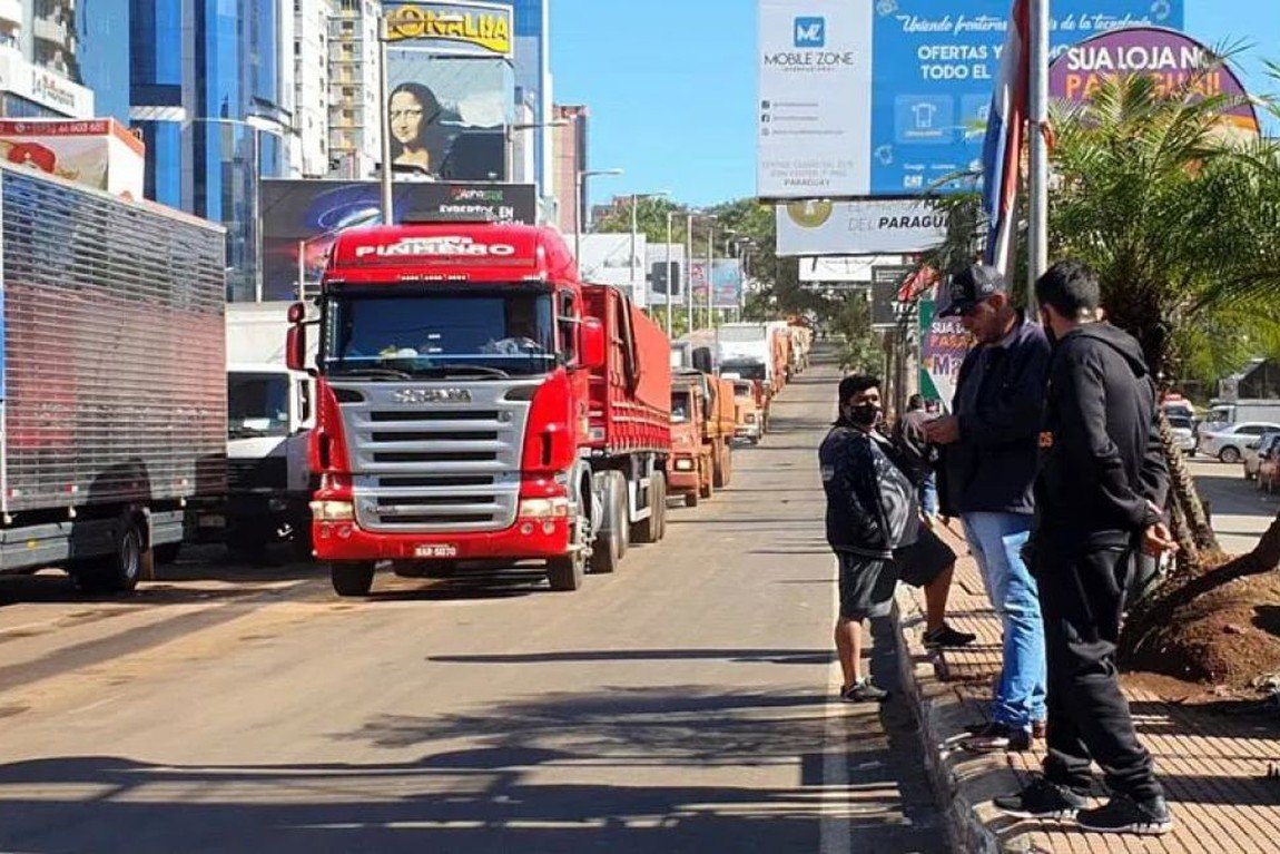 Fila de caminhões no paraguai.