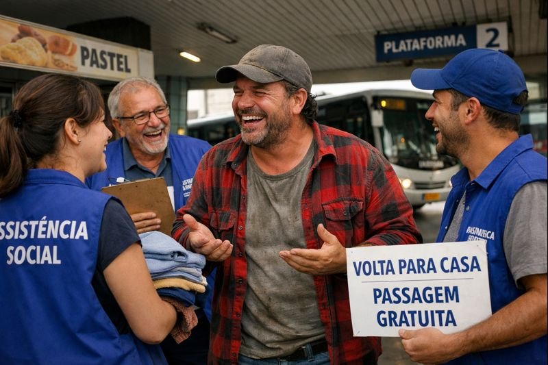 No meio do caminho, foi abordado por uma equipe da assistência social, que ofereceu banho, barbearia, roupas limpas e até passagem gratuita para voltar à terra natal.